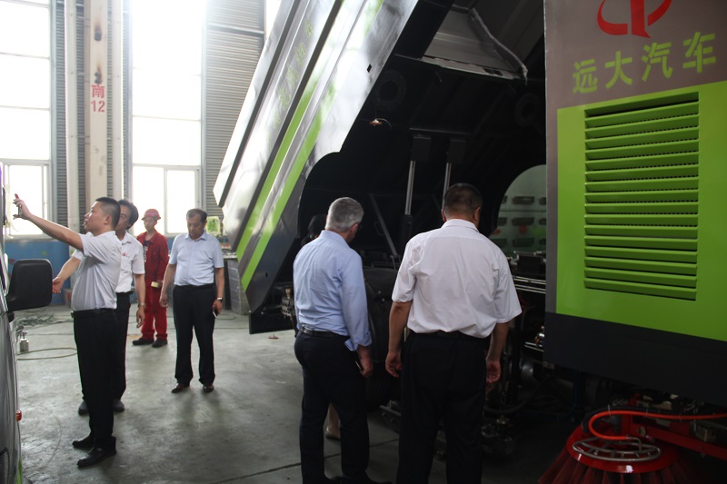 董事長(zhǎng)王洪剛帶領(lǐng)瑞士友人一行人首先在會(huì)議室中進(jìn)行了深入的溝通以及了解,隨后觀摩了遠(yuǎn)大集團(tuán)的生產(chǎn)車間,對(duì)車輛設(shè)備的生產(chǎn)流程及車輛產(chǎn)品效果做了詳細(xì)了解,對(duì)我司的產(chǎn)品進(jìn)行了解和咨詢,參觀了洗掃車、灑水車、垃圾車、壓縮車、垃圾箱等環(huán)衛(wèi)設(shè)備。