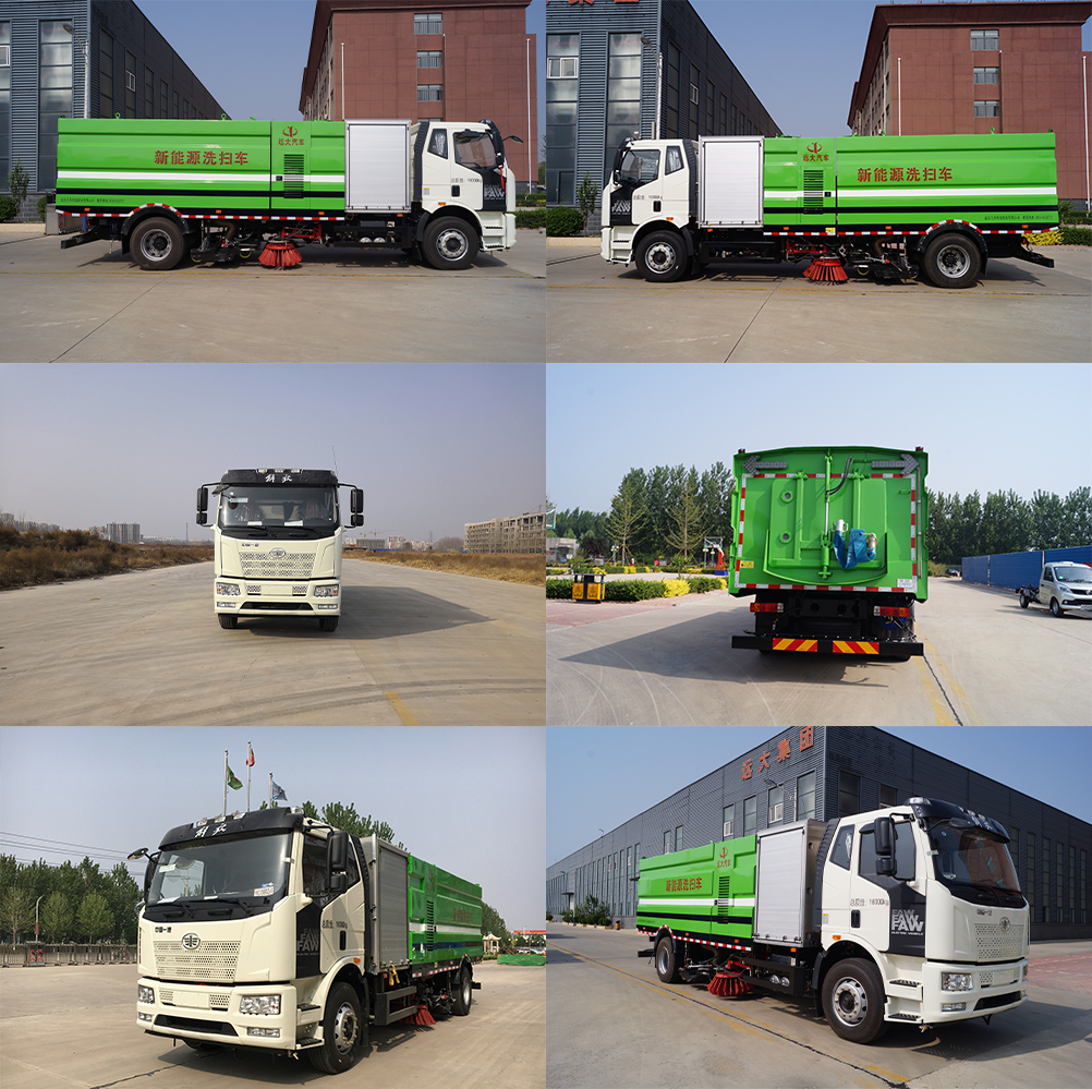 隨底盤選裝駕駛室,窄保險杠,腳踏板,側部裝飾板;該車有2種軸距.選用5600mm軸距,整車長度9153mm.高度為3100mm時,整備質量14590kg,額定載質量3215kg.高度為2960mm時,整備質量14500kg,額定載質量3305kg;選用5300mm軸距,整車長度8853mm.高度為3100mm時,整備質量14390kg,額定載質量3415kg.高度為2960mm時,整備質量14300kg,額定載質量3505kg;側面防護裝置和后部防護裝置的材料為Q235A,連接方式均為螺栓連接;后部防護裝置的斷面尺寸(寬×高)mm:80×160,離地高430mm;產品技術階段為發(fā)展期,可在全國銷售;電池種類:磷酸鐵鋰蓄電池;電池型號:MFH3L8,單體蓄電池電壓/容量:3.22V/202Ah,總電壓:540.96v,電池生產企業(yè):寧德時代新能源科技股份有限公司,驅動電機類型:交流永磁同步電機;驅動電機型號:TZ370XS-LKM1101;驅動電機功率(額定功率/峰值功率)KW:80/160;驅動電機生產企業(yè):蘇州綠控傳動科技有限公司,控制器型號KTZ54X45S-LKC1101;控制器生產企業(yè):蘇州綠控傳動科技有限公司.隨底盤裝有ABS,ABS生產廠家:1.長春科密汽車制動有限公司,型號:CM4XL.ABS生產廠家:2.WABCO,型號:44600XXXX0.該車專用裝置由垃圾箱,風機和清掃裝置等組成,實現清掃作業(yè).