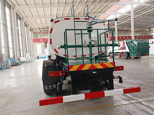 罐體部分采用優(yōu)良錳板制造,罐體內采用優(yōu)良的對接焊技術,罐體焊后采用氣壓檢漏檢測,噴丸噴漆,使罐體具有強度高、密封好,車輛運載安全平衡等特點。罐體為矩圓形,內部采用防波板結構,可有效阻止罐體內部水的晃動、沖擊,內部防腐處理,延長使用壽命。